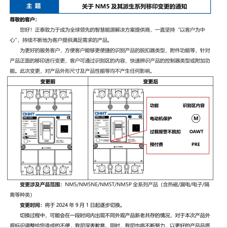關于NM5及其派生系列移印變更的通知