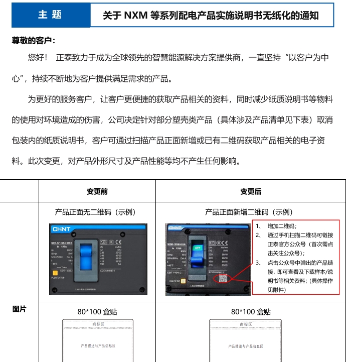 關(guān)于NXM等系列配電產(chǎn)品實施說明書無紙化的通知