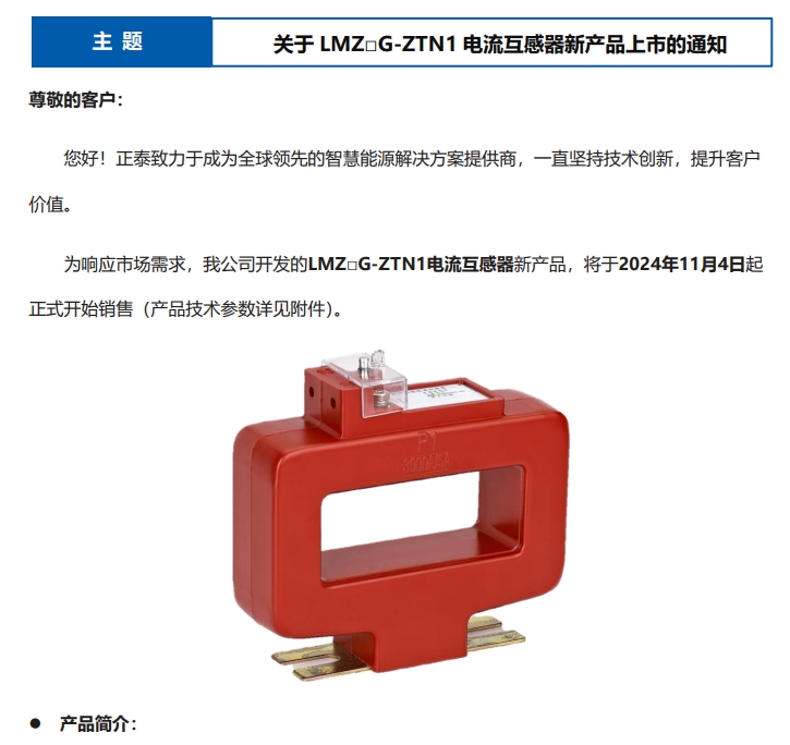 關于 LMZ□G-ZTN1 電流互感器新產品上市的通知