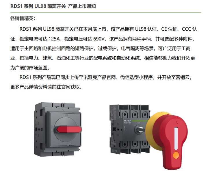 RDS1 系列 UL98 隔離開關(guān) 產(chǎn)品上市通知