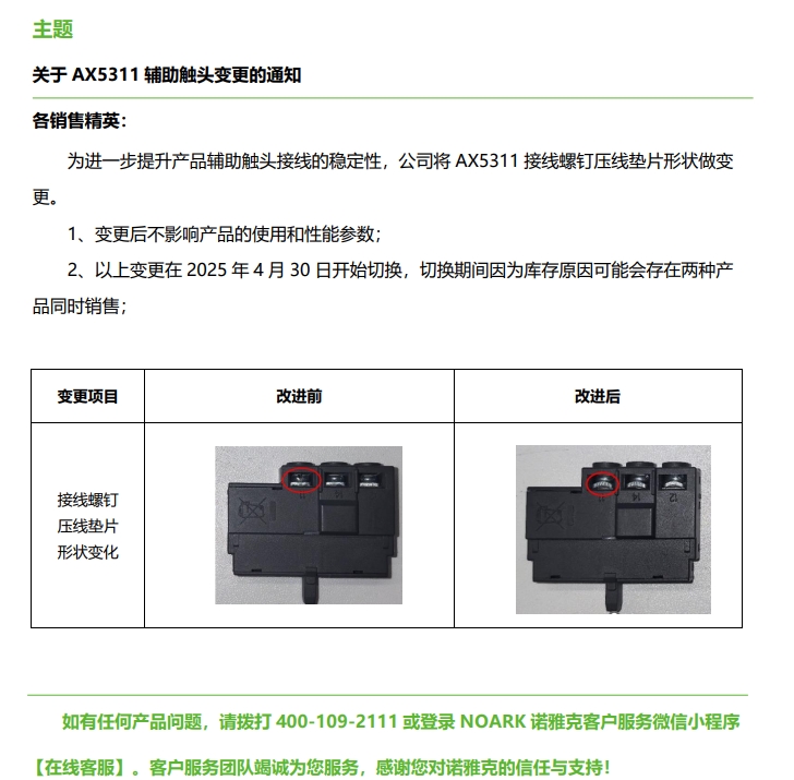 關(guān)于 AX5311 輔助觸頭變更的通知