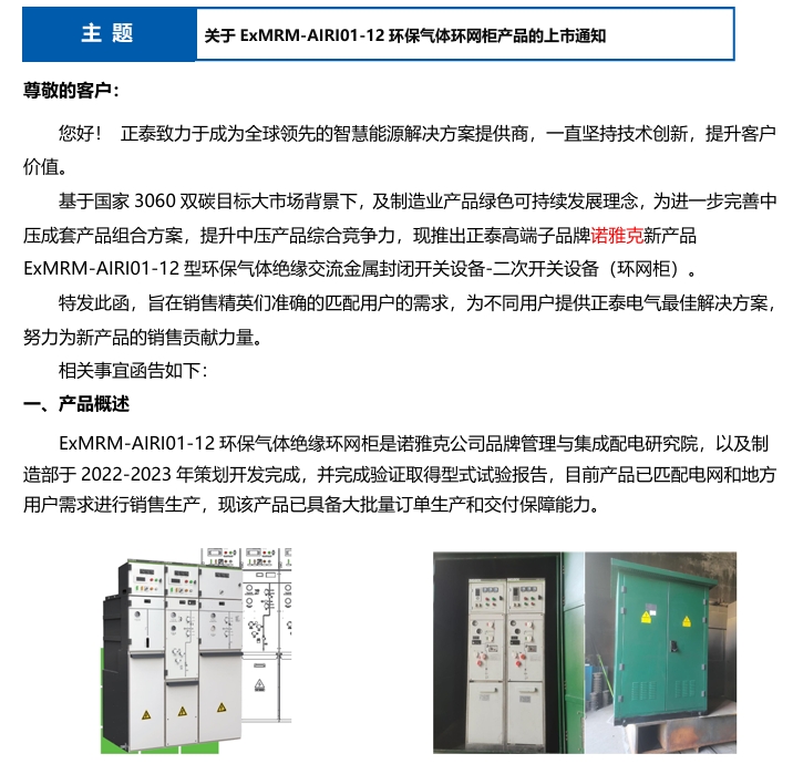 ExMRM-AIRI01-12環(huán)保氣體絕緣交流金屬封閉開(kāi)關(guān)設(shè)備上市通知