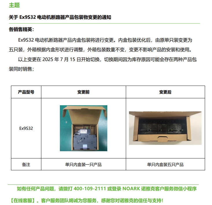 關(guān)于 Ex9S32 電動(dòng)機(jī)斷路器產(chǎn)品包裝物變更的通知